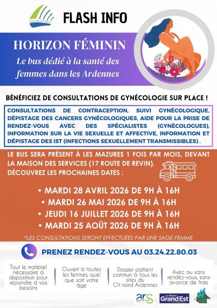Voici les prochaines dates du passage du bus "Horizon Féminin" dans la commune (dates et horaires mis à jour) :